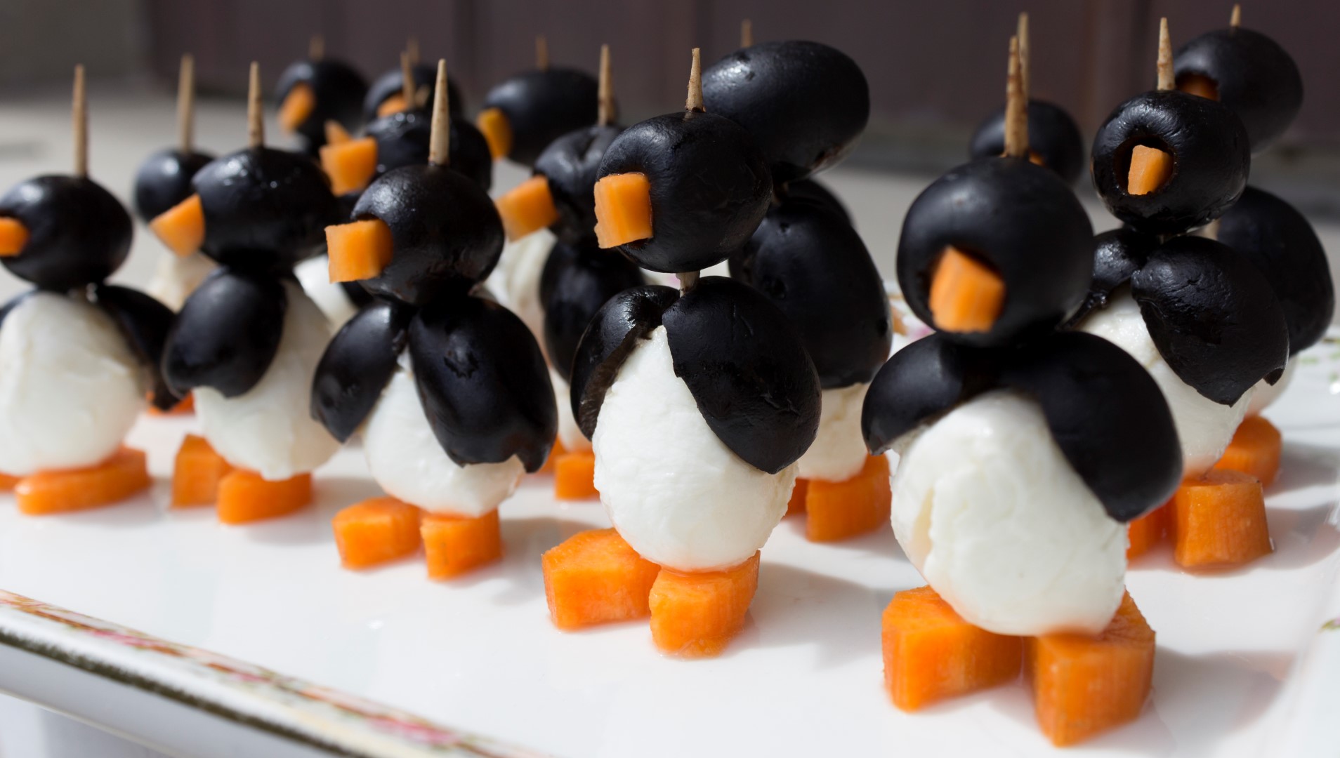 They are not just healthy, they also look really cute. These penguin snacks are simple to make and also are great table toppers. Slice black olives in half and fill center with cream cheese to replicate a penguin’s color. Finish each piece with cut up carrots, which will be the penguins’ feet and beaks. Keep everything skewered together with a toothpick.